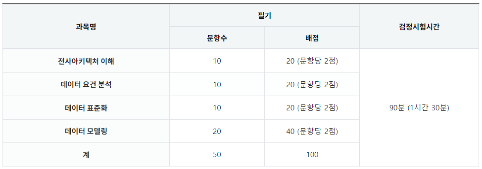 ADsP 때와는 달리 과목이 4개로 나눠져 있고, 심지어 한 곳에 문항 수가 몰려있진 않네요....? (ADsP는 1과목 10문제 2과목 10문제 3과목 30문제였음 ㅋㅋㅋㅋ)