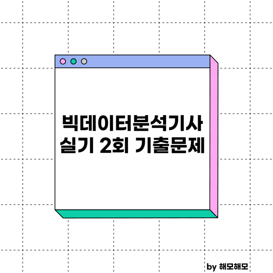 | 빅데이터 분석기사 실기 작업형 3유형 요약정리 (1) | 2023.06.24 |