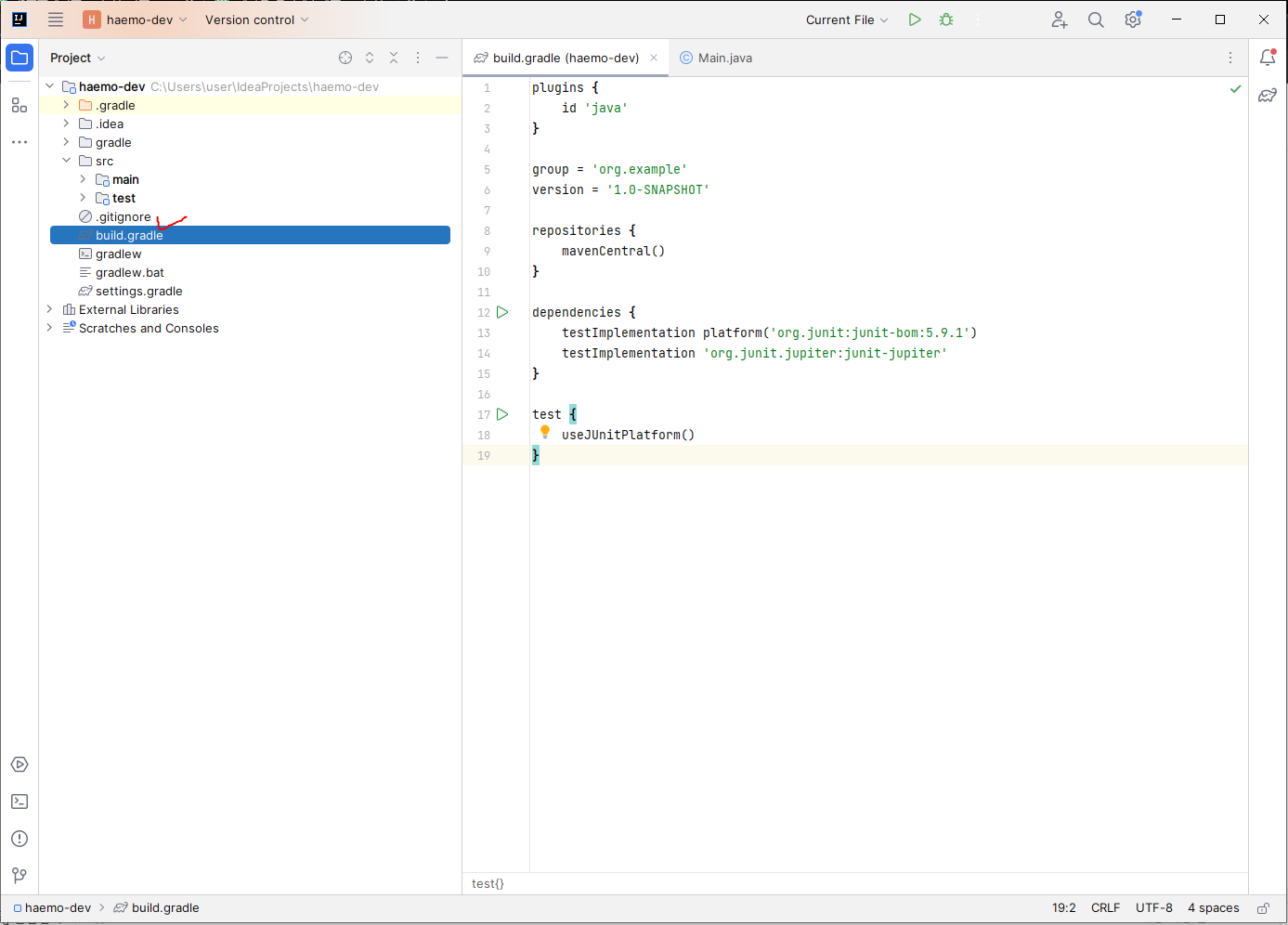 group = 'org.example' //변경 없음. 프로젝트 생성했을 때 지정한 group 이름